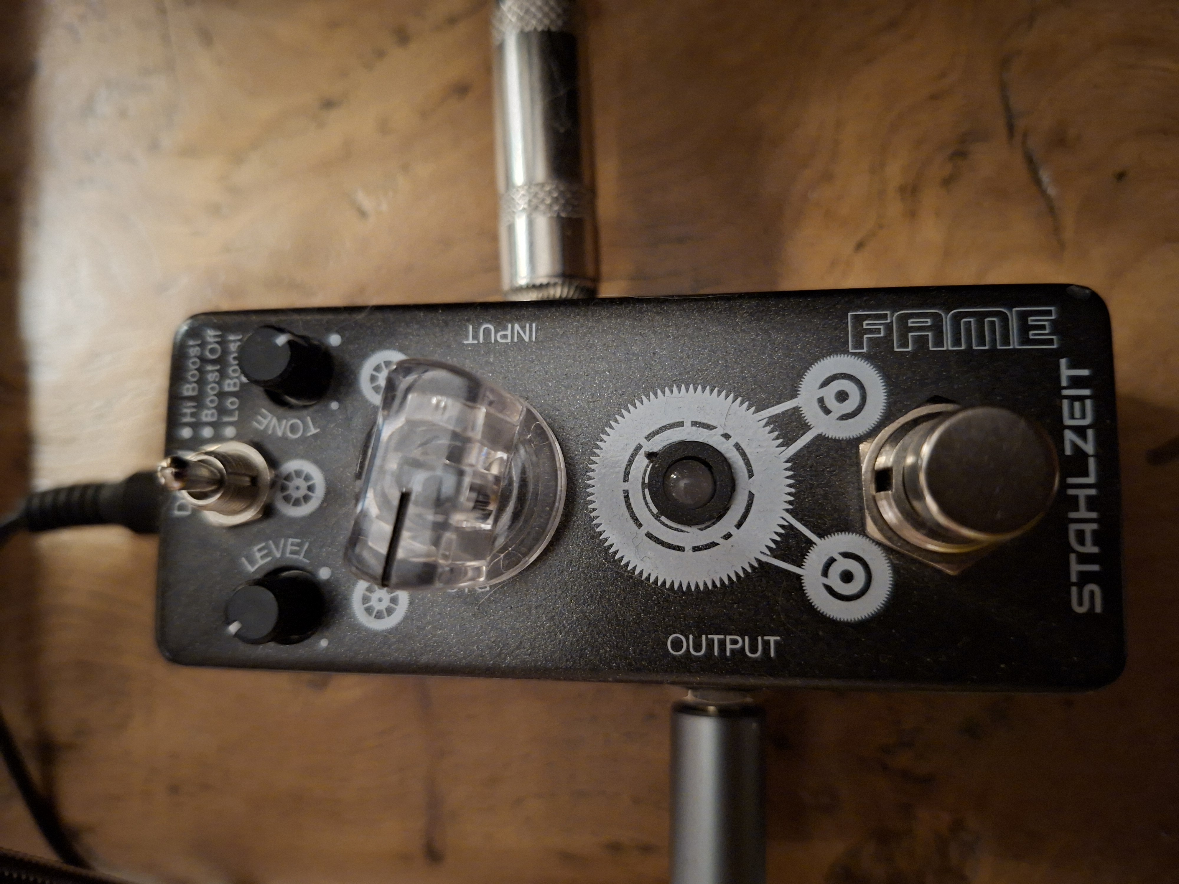 Peux-tu me détailler ta chaîne de pédales ou d'effets? Ou sinon me prendre une photo de ton ampli/pédales stp?